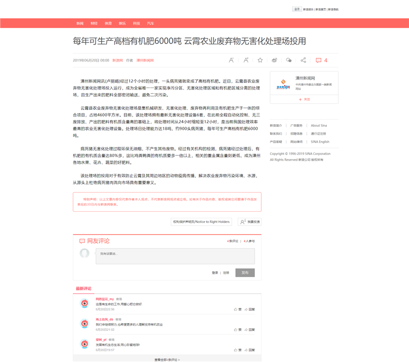 2019年9月5日,福建省委機關報《福建日報》發布題為“讓病死豬變身有機肥”的新聞報道,將我司雷建強總經理主導研發病死豬無害化設備的創業故事作為雙創代表的先進事跡進行宣傳報道。
