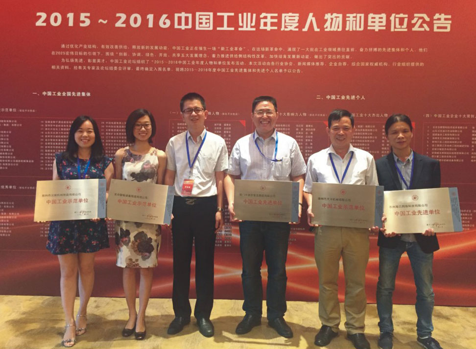 2016年6月,在第十二屆中國工業論壇上,福建省工業文化協會秘書長陳良財(左三)與雷建強總經理等相關獲獎代表合影