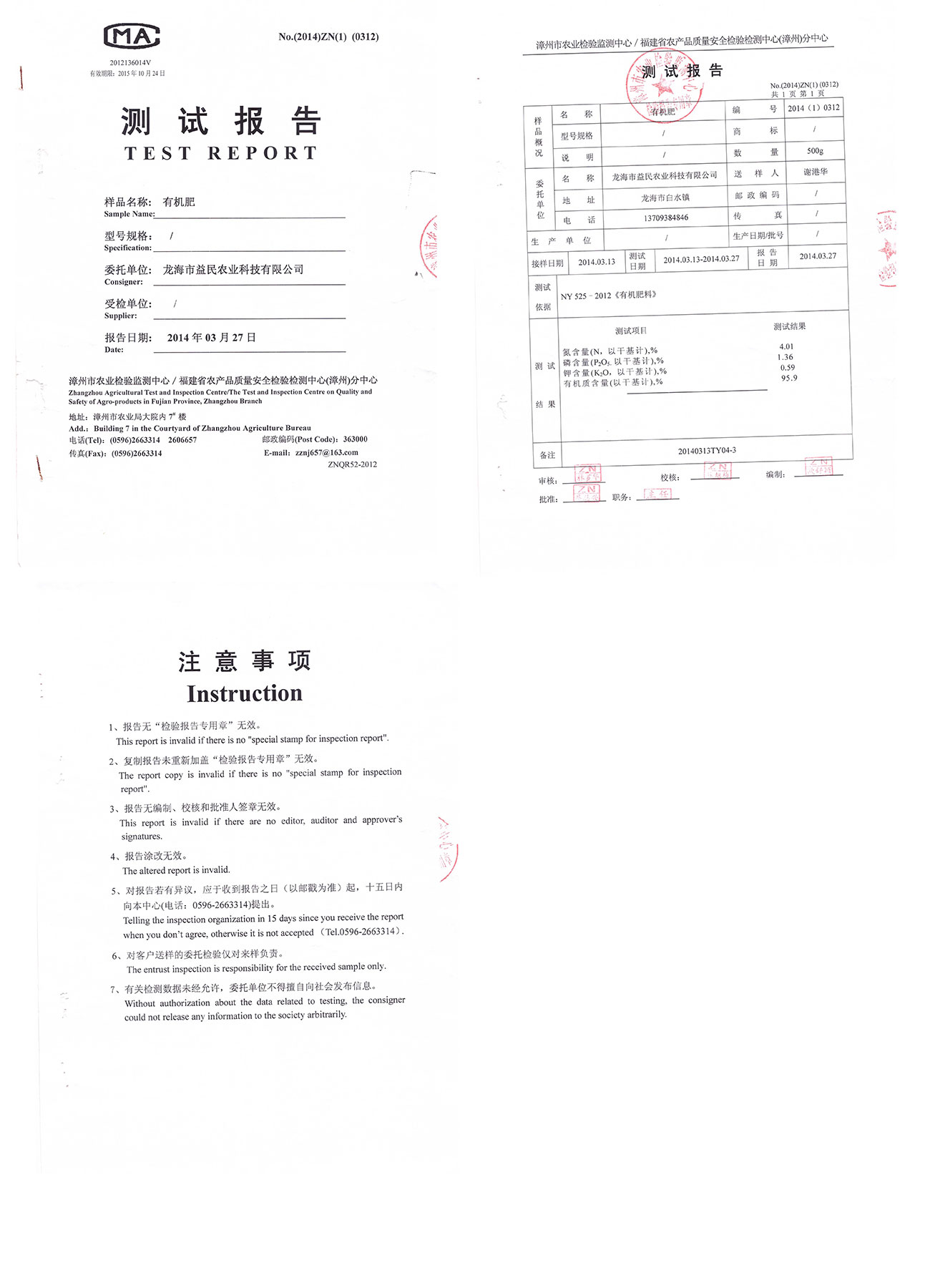 漳州市農業檢驗檢測中心測試報告 有機肥1
